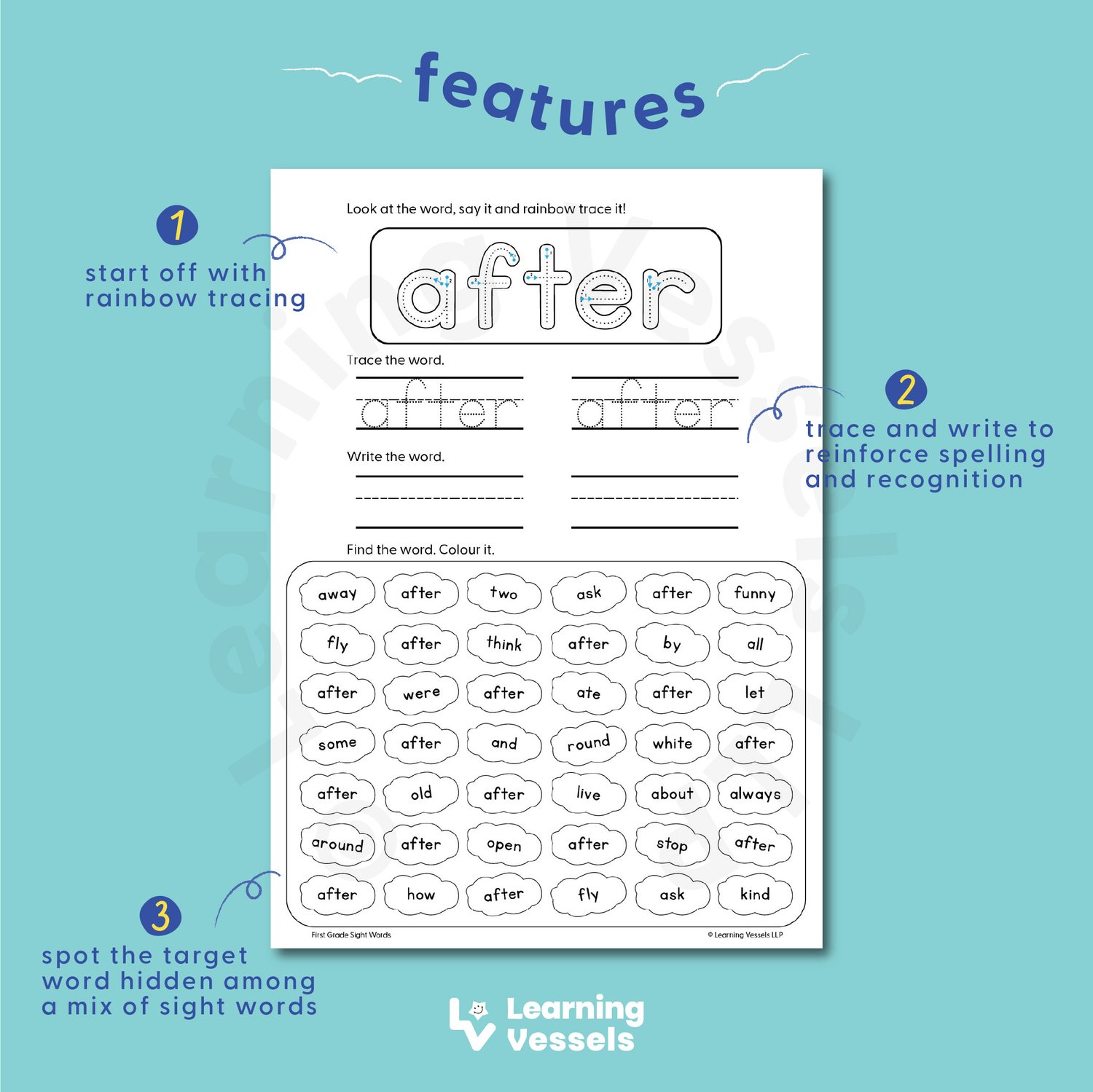 Help your child build reading confidence with this interactive Sight Word Trace & Find activity set! Featuring all 41 words from the Dolch Sight Words First Grade list, this resource was designed to for effective learning through varied drills.