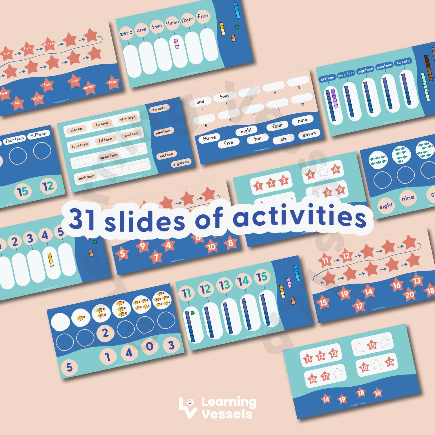 This set consists of 4 Microsoft Powerpoint-based activities that you can use at home on your computer with your child, or for online classes. Get children to recognize numbers and number words through these easy, interactive drag & drop ppt slides! Learn sequencing and counting using number blocks as well.