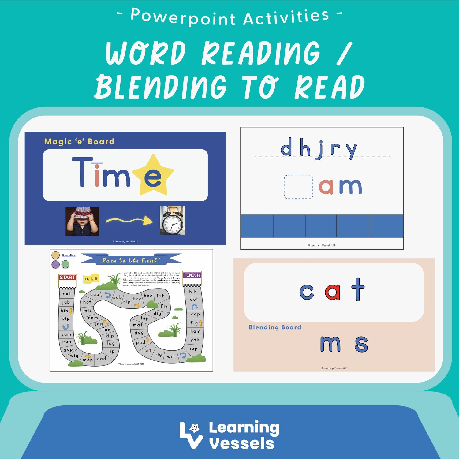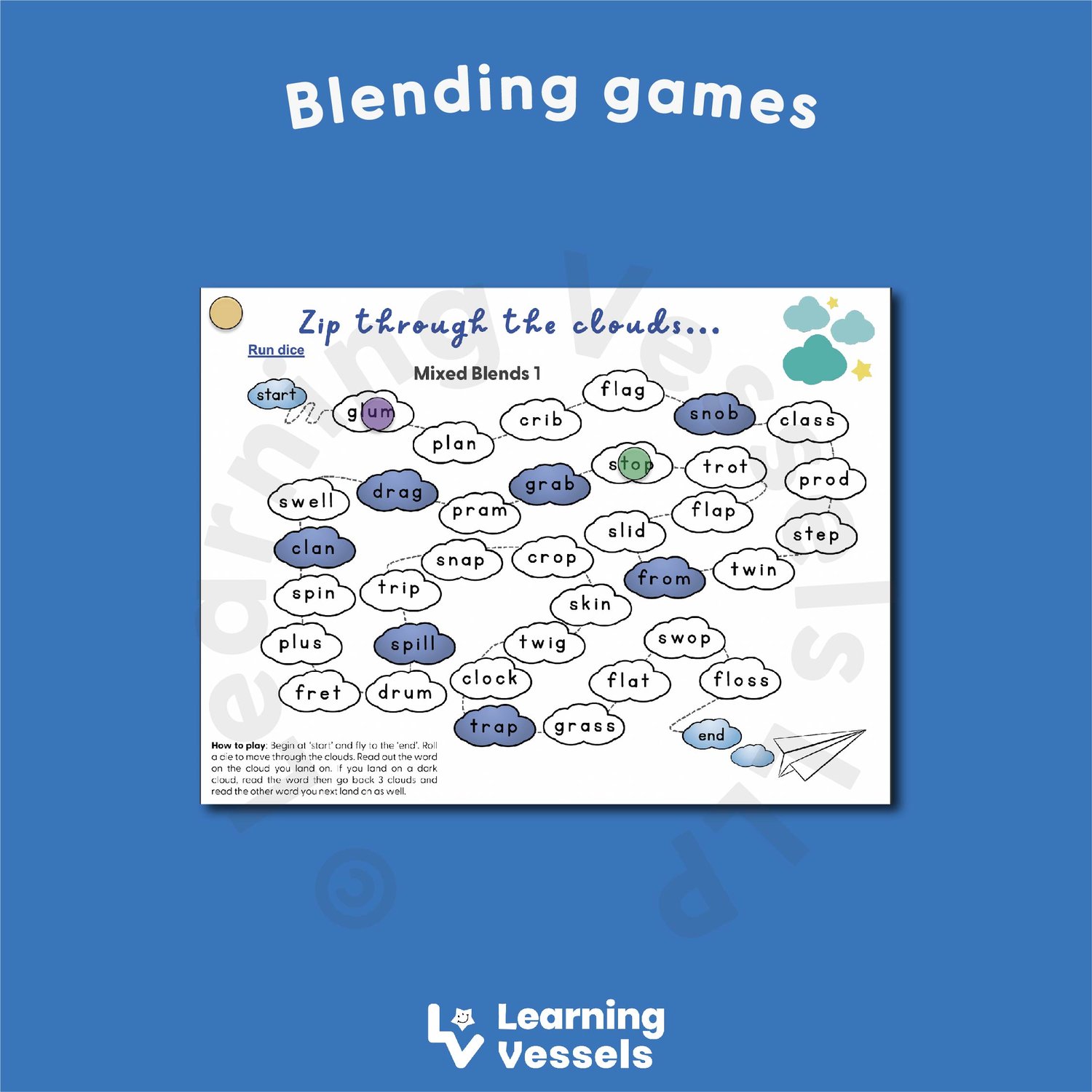 i. We assembled four of our blending board games and created a virtual version. You can run a virtual dice, move game pieces and read words that you land on.