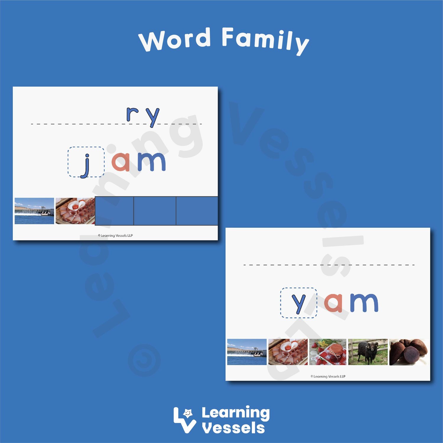 i. An animated set of slides for blending Word Family words like -at, ig, en, -op, -ug words. Pictures representing the word will be ‘revealed’ after the child has tried to read a word correctly. (can only be used in Microsoft Powerpoint!)