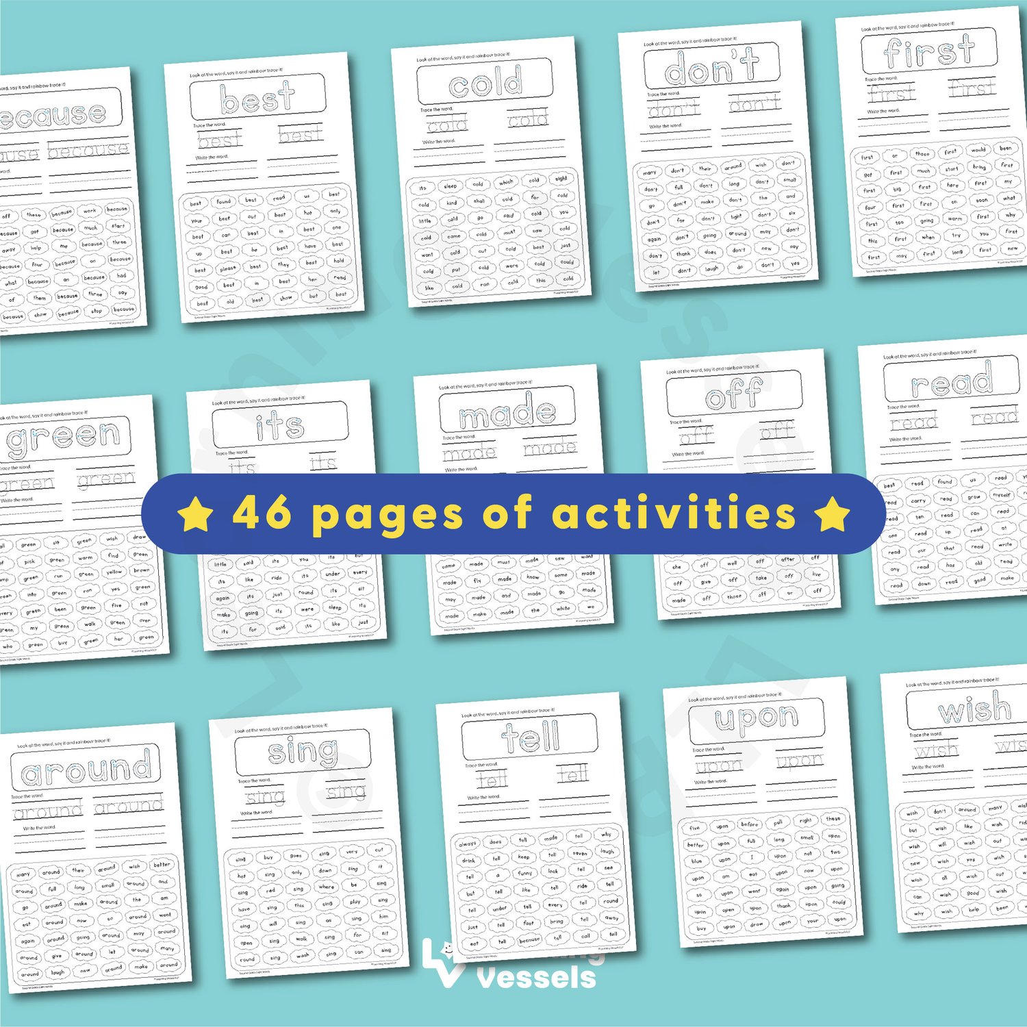 This set of PDF consists of 46 pages - 1 page for each sight word.