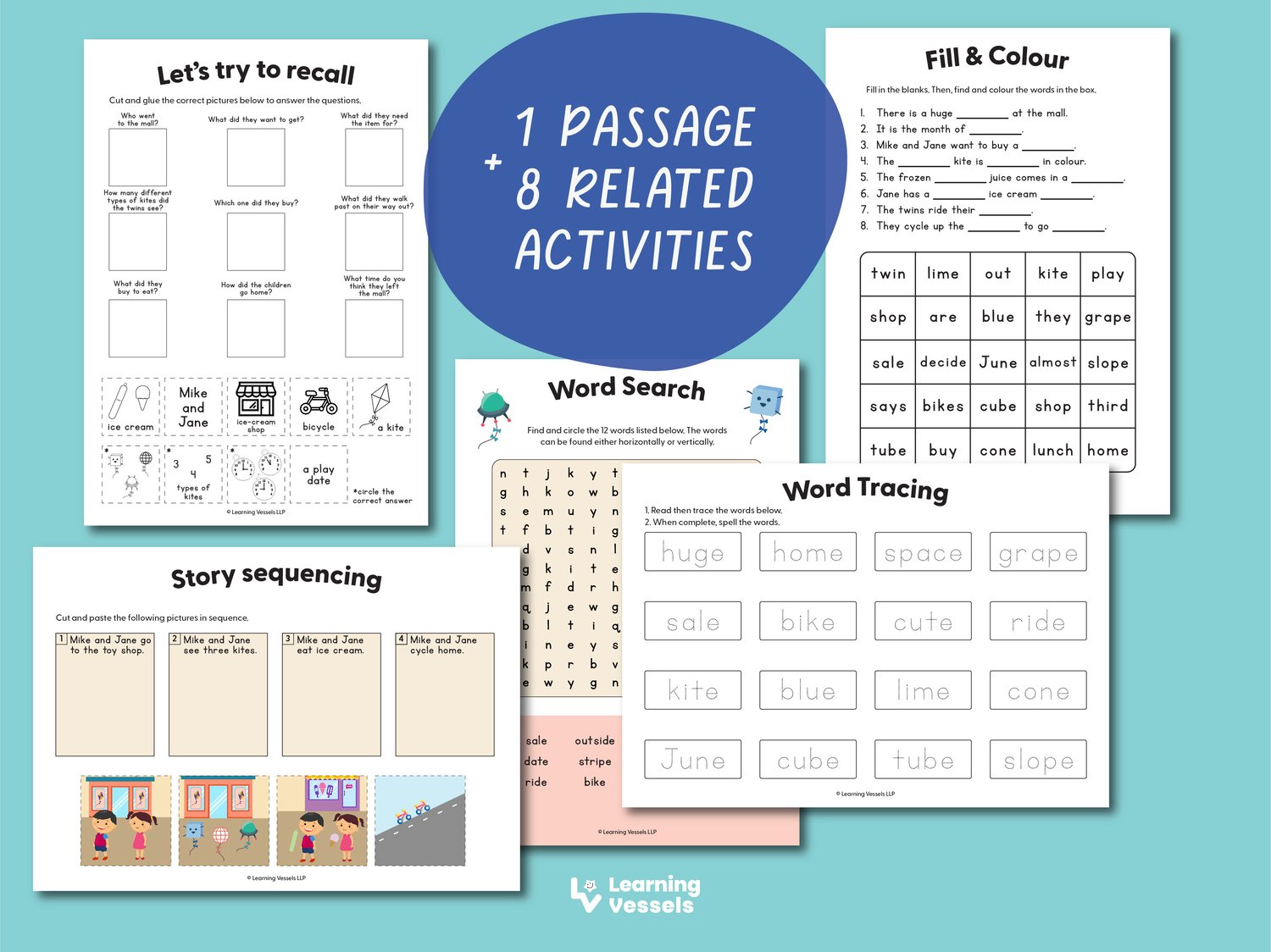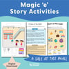 This Magic 'e', or also known as Silent 'e', hands-on printable consists of 8 engaging activities! The PDF starts off with passage-reading, followed by activities that trains the child's fine motor, visual, and comprehension skills. This set is designed to enhance your child's fine motor, visual, and comprehension skills. The activities center around the magic 'e' words found in the passage, creating a dynamic learning experience. By incorporating word repetition from the story to the activities, we foster vocabulary-building and improve word retention.